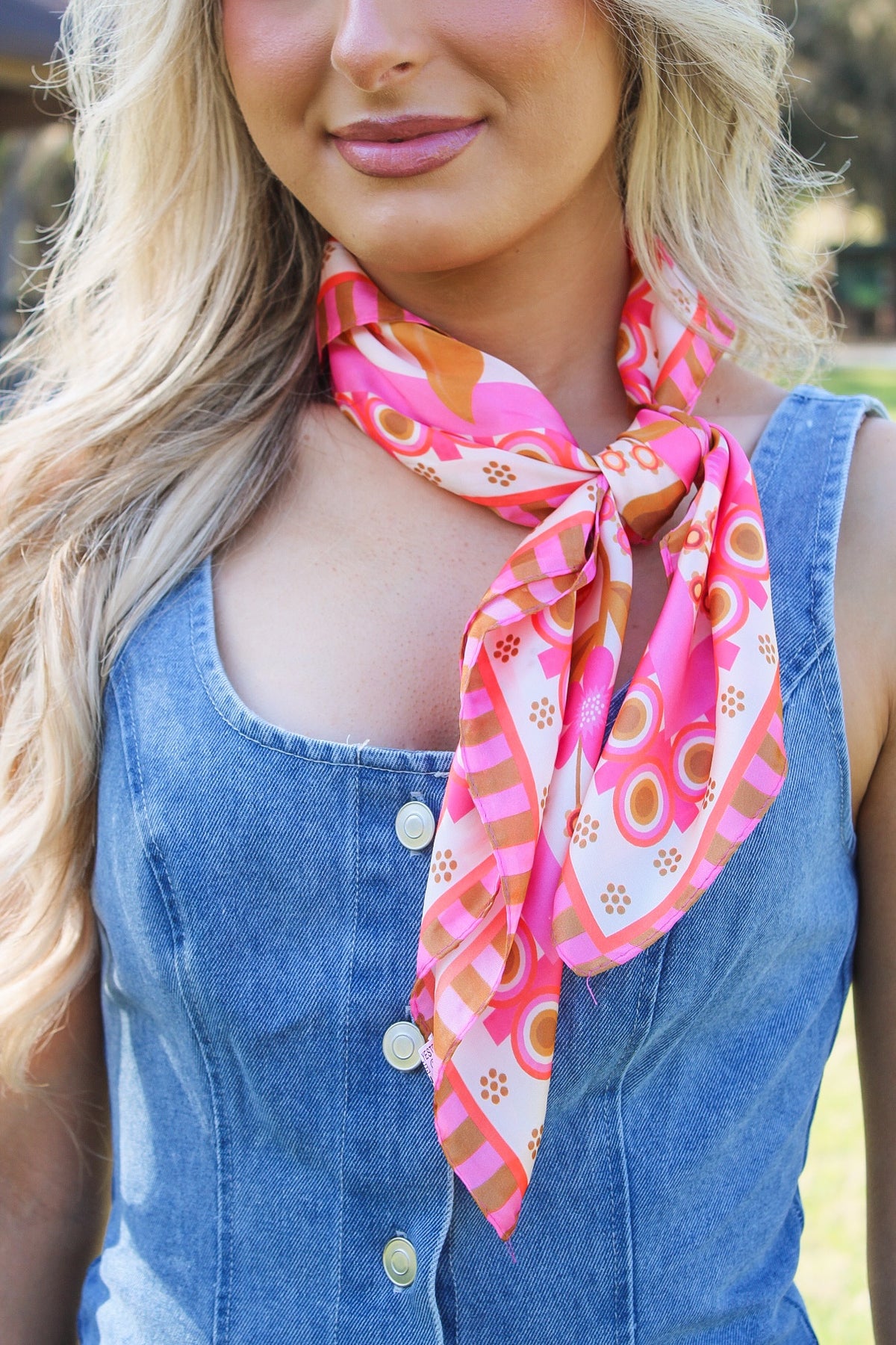 Floral Print Square Bandana Scarf - Pink